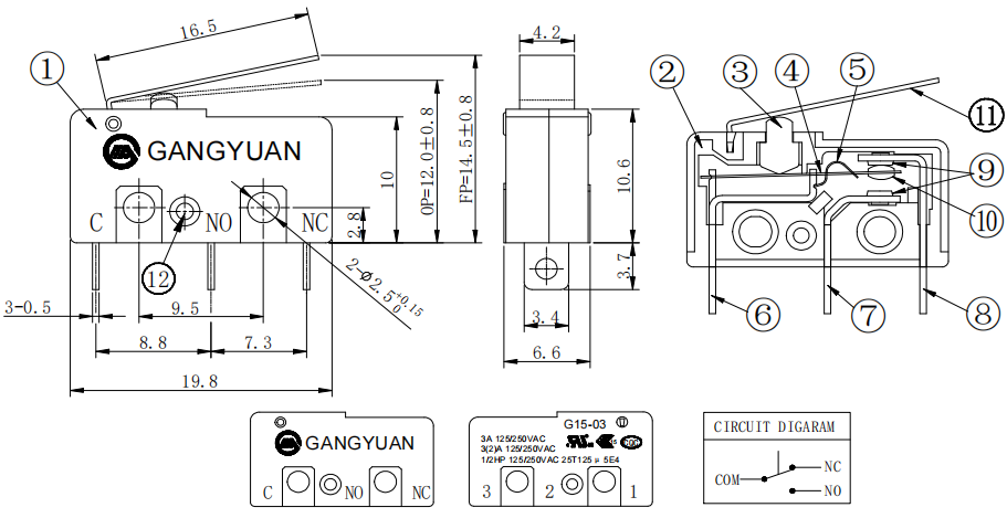 ミニチュアマウスマイクロスイッチ オートマイクロスイッチ SPST-NO ショートローラーマイクロスイッチ