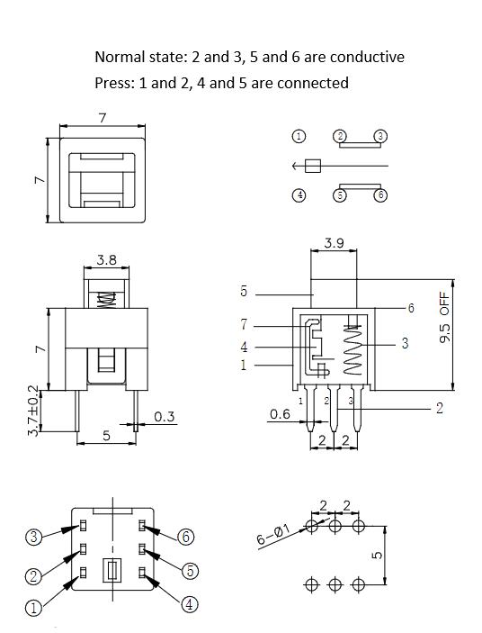 6ピンのスルーホール設計により、PCBのはんだ付けが確実で、機械的固定が安定しており、電気接続も確実です。