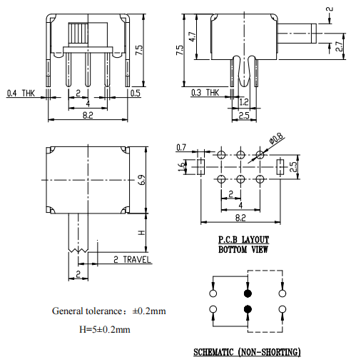 No IP RatingPCB実装用小型各種ノブスライドスイッチ