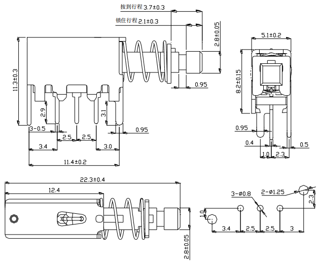 タイプ: 3ピンSPDTストレートキープッシュボタンスイッチ