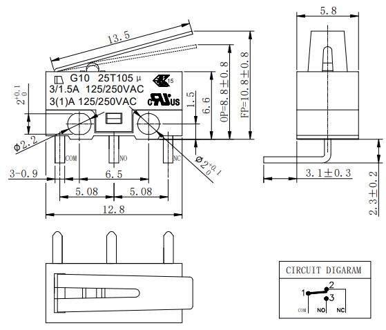 その 12.8×5.8mmマイクロスイッチ コスト効率に優れた中型コンパクトモデルです。主な利点としては、