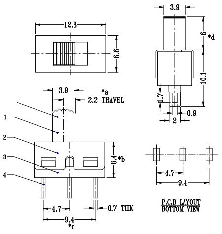 1P2Tトグルスイッチは、単極双投(SPDT)制御スイッチで、揺動操作によって1つの回路を2つの状態(オン/オフ、モード選択など)間で切り替えます。はんだ付け端子(PCB直接はんだ付け用)とプラグイン端子(パネル取り付け用)の2種類の取り付け方法に対応しています。